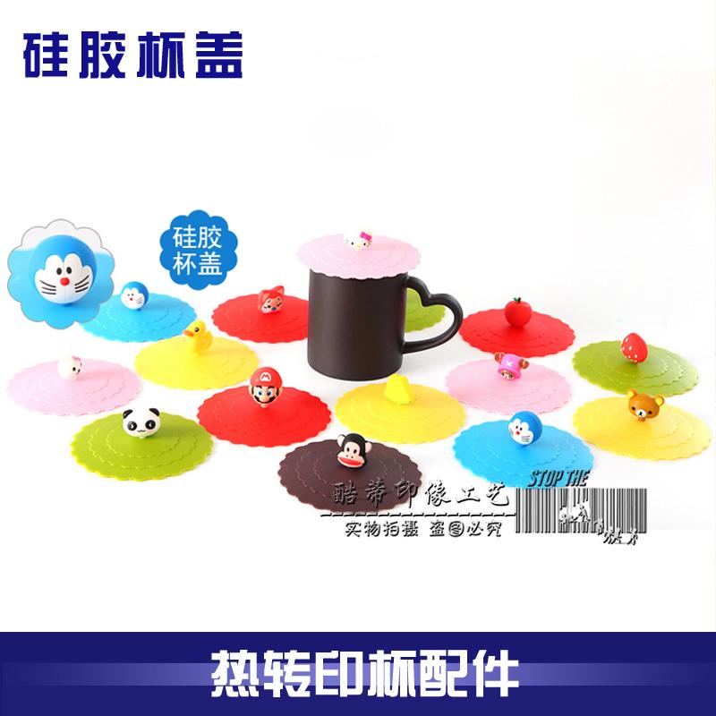 Heat transfer cup silicone cup lid color-changing cup white cup mug cup lid cute cartoon animal head creative cup lid