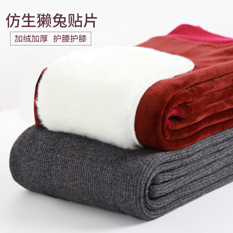 Middle aged warm pants female high waist winter thickened plus suede plus mast size Rex rabbit hair care kneecap thermal pants old cotton pants