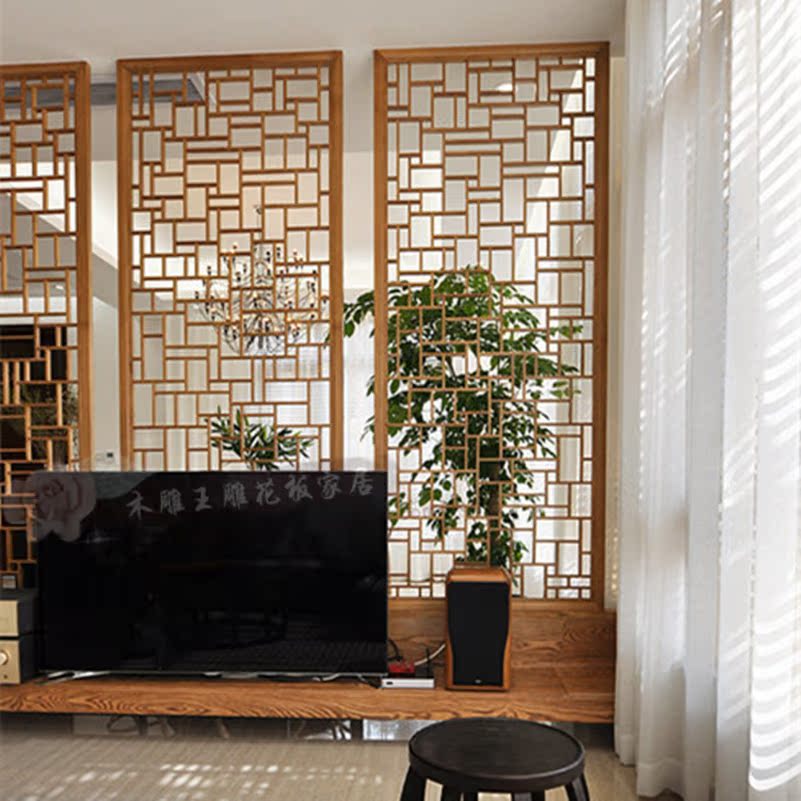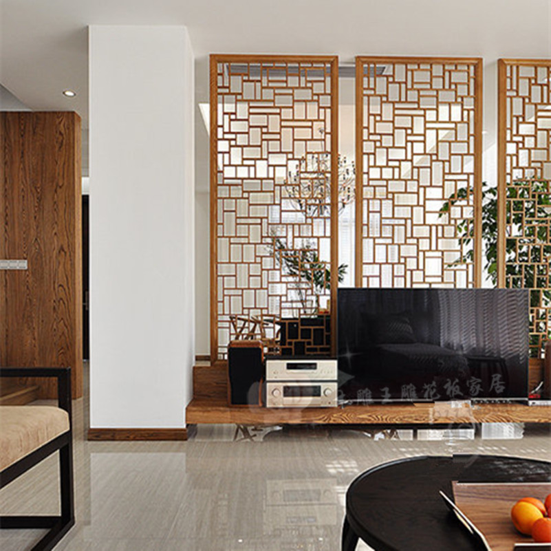 New Chinese modern hollowed-out partition wall carved plate density plate hollowed-out flower lattice flower plate Xuanguan partition screen
