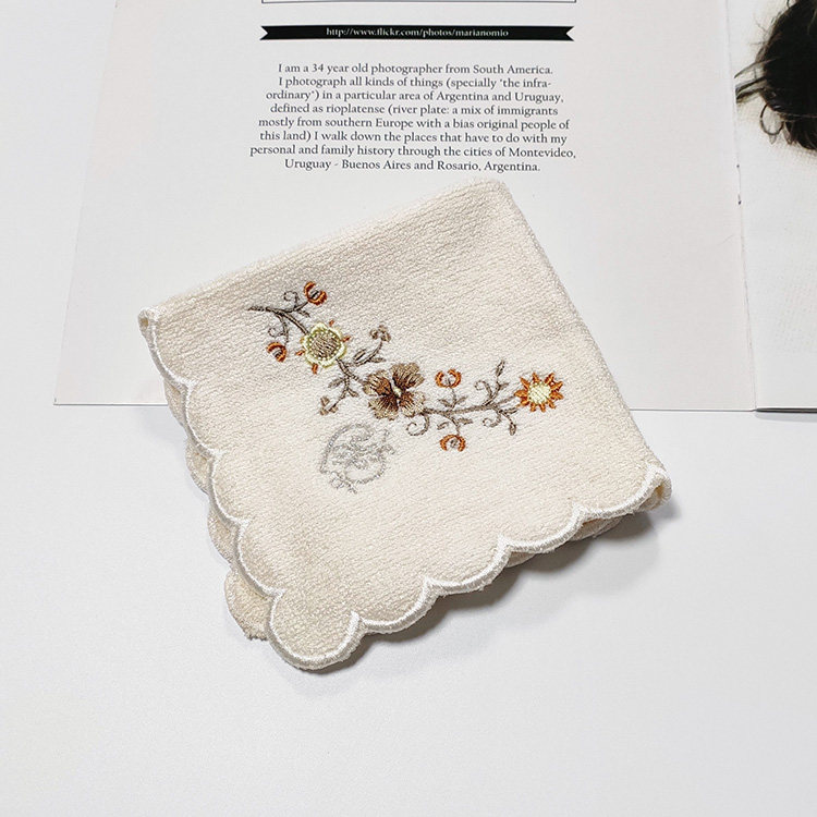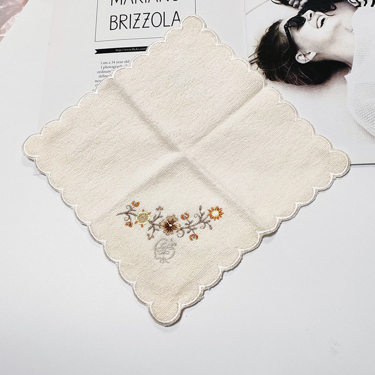 White embroidered handkerchief (21 x21) meat pink small square towel (32 x32) white long towel (30 x70) light pink large bath towel (70 x140)