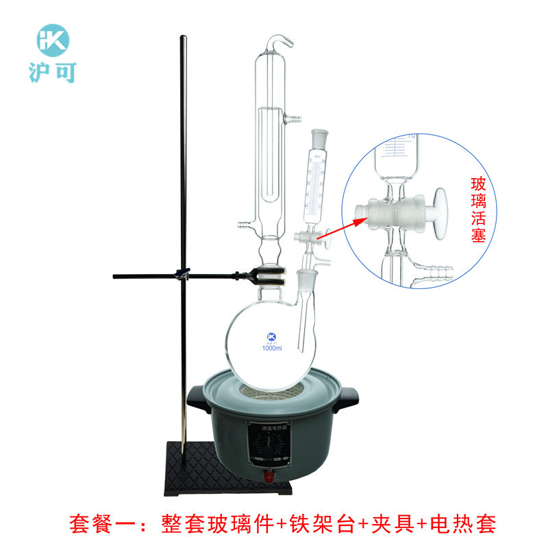 Complete set of glass pieces 2 0 1000ml Complete set of glass pieces 3 0 1000ml two-necked flask 1000ml condenser tube 29# 2 0 condenser tube 2