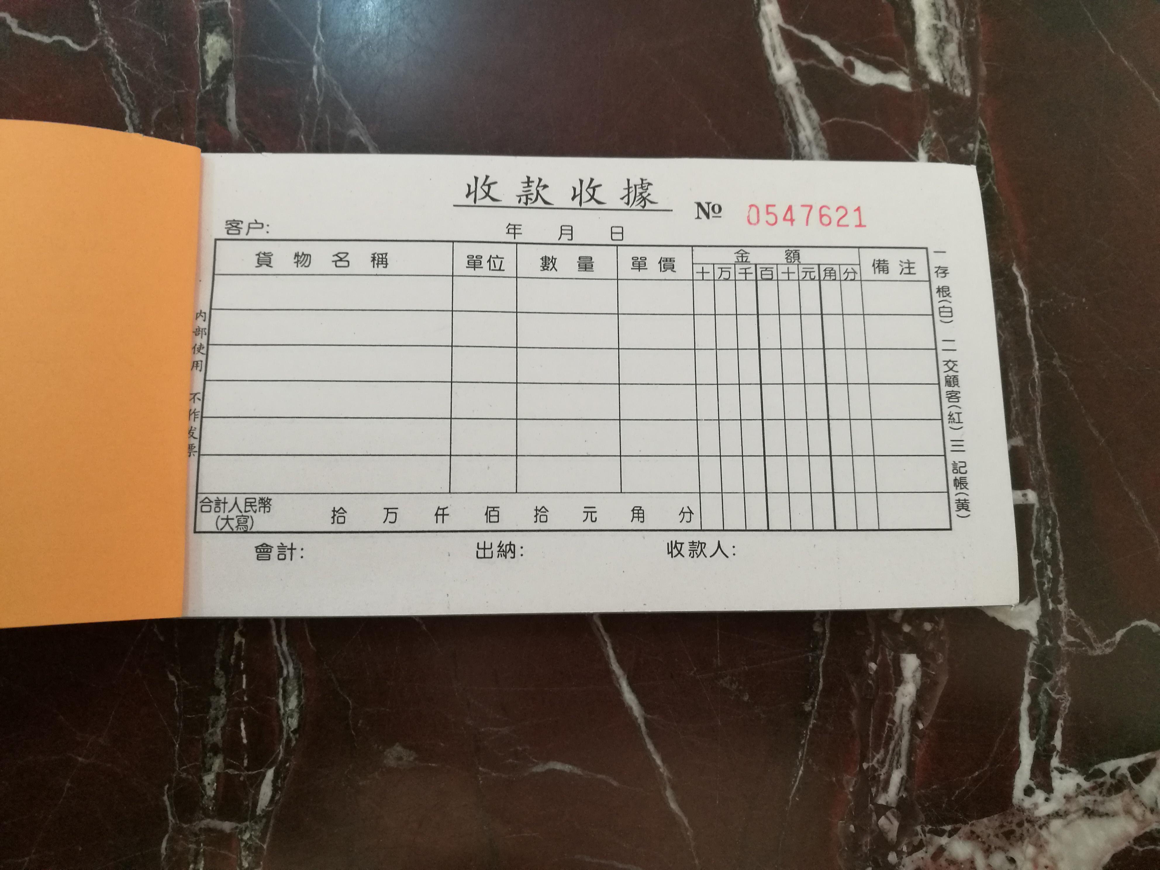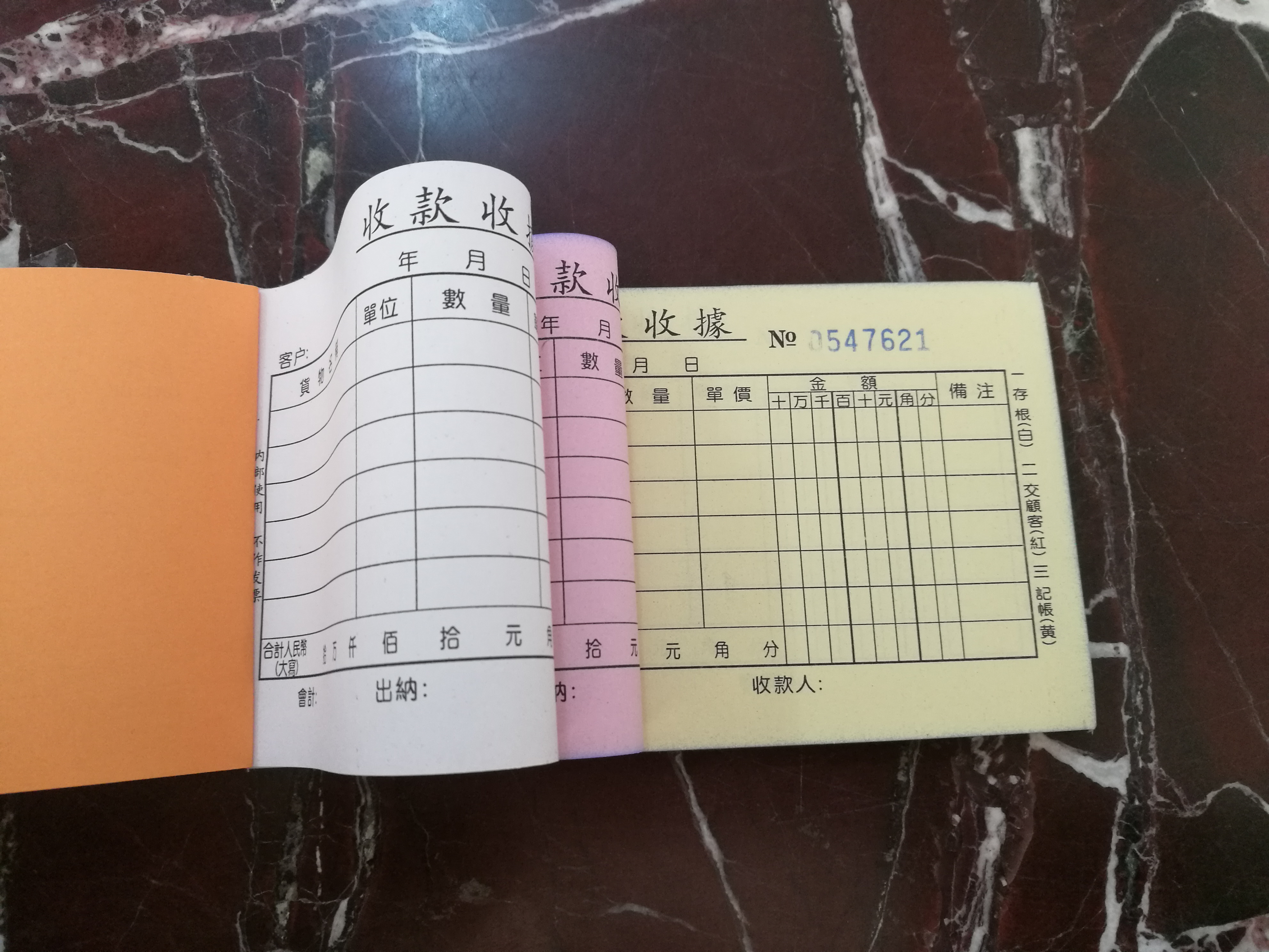 Color grid triple single column multi-column carbonless copy receipt 20 sets of self-contained pads