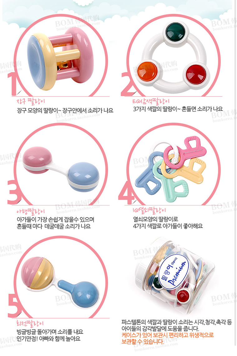 Korea Imported Baby Hand Rocking Bell Combo Newborn Baby Toys Puzzle 5 Pieces Gift Box Set Group Spot 0-1