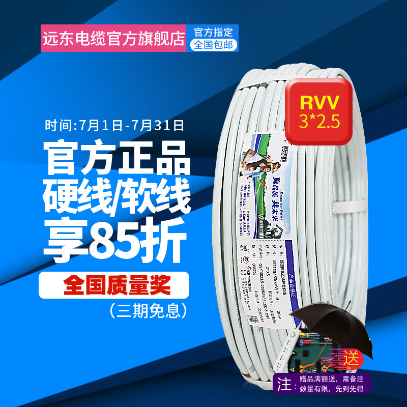 Far East wire and cable RVV3*2 5 square national standard 3 core soft sheath copper core wire Electronic wire Home improvement wire