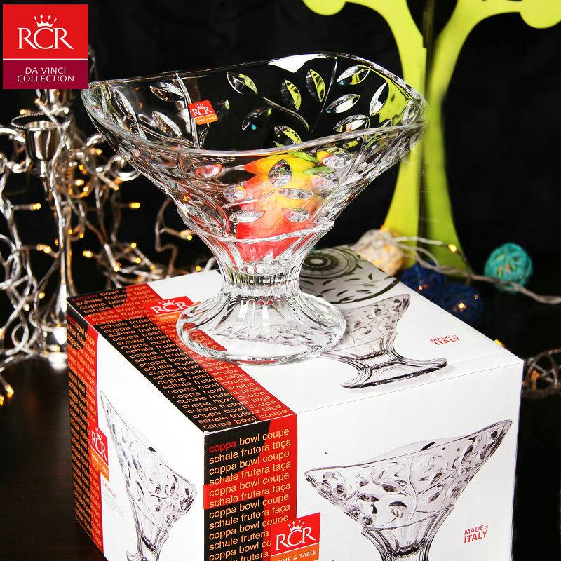 Italy RCR imported leaf pattern European carved transparent glass fruit plate fruit bucket dessert plate creative dried fruit plate
