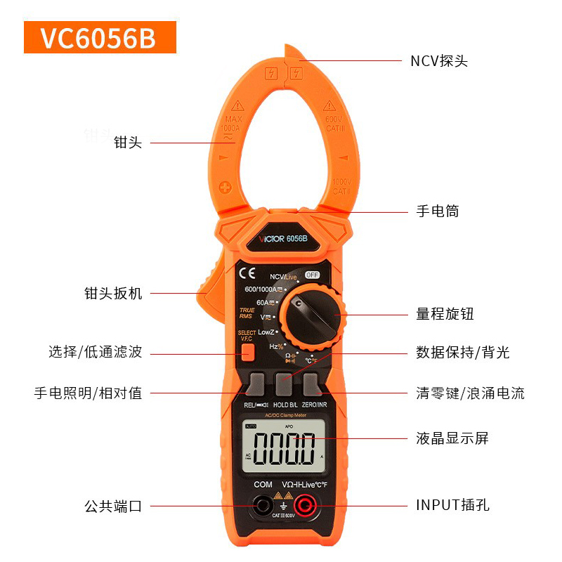 Victory clamp multimeter VC6056A B C D E automatic range clamp meter AC and DC ammeter