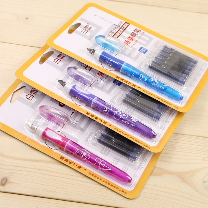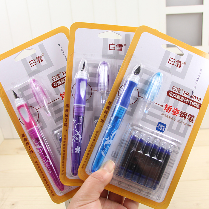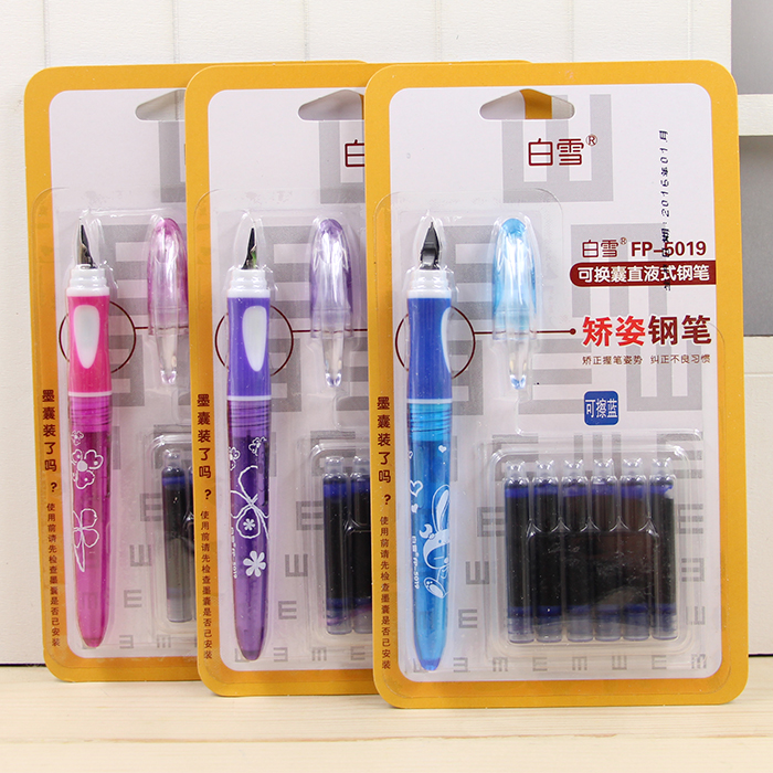 Positive posture correcting white snow 5019 straight liquid type of exchangeable sack primary school pupil can wipe blue ink blue ink with ink sac pen