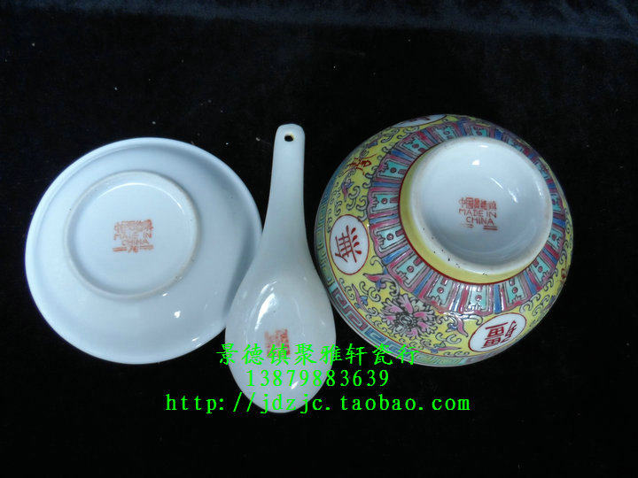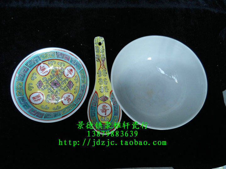 Jingdezhen Factory Goods Porcelain Handmade Powder color yellow Wanshou without Xinjiang straight mouth rice bowls 3 heads Birthday Banquet Table Cutlery