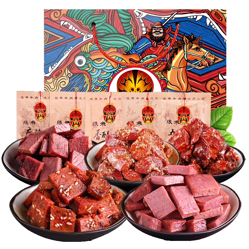 (Zhang Fei _ Fashion five pieces of 58gx5) Sichuan Chengdu Teaters Beef Dry Casual Snack Snack Big Gift Bag