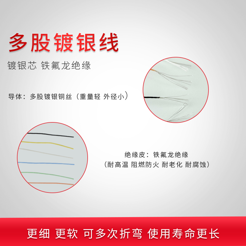 250deg high temperature wire Very fine multi-strand soft silver plated wire polytetrafluoroethylene film wrapped wire 0 5mm