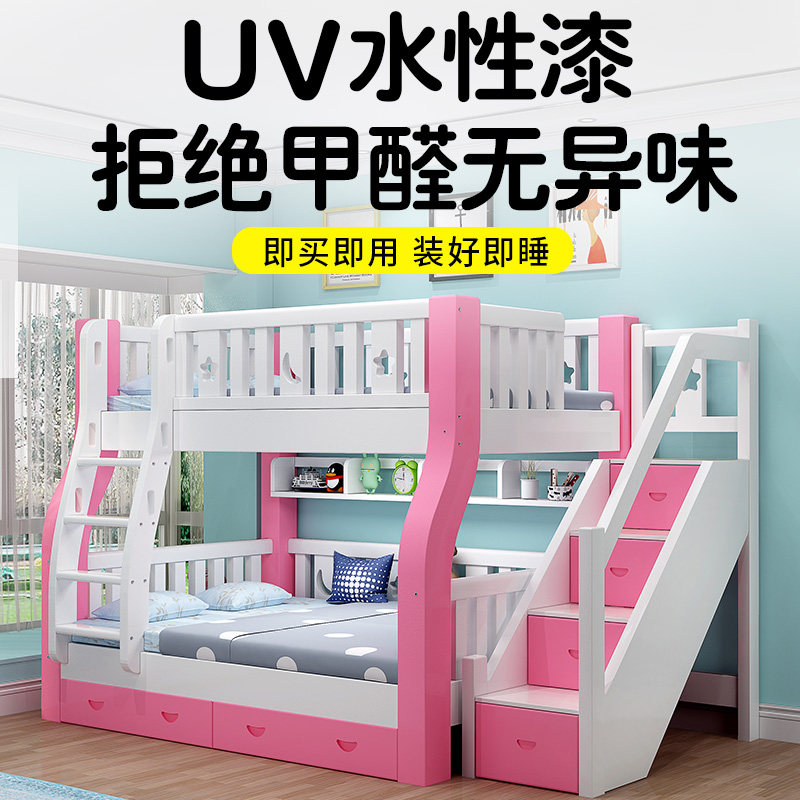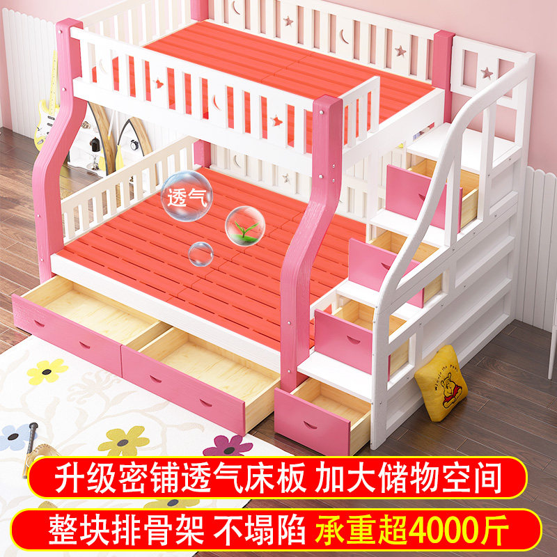 Full solid wood Children two floors upper bunk bed pink and low bed Double bed and mother double bunk bed and mother bed