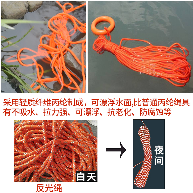 Large buoyancy lifeline 8mm floating escape rope length 30m outdoor rescue safety rope reflective lifeline
