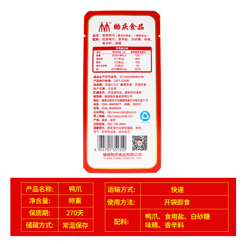 Mussel Food Leisure Snack Hongase claws Cooked Food Brine Cooked Duck Claw Springs State Special Produce Snack Independent 10 Lots