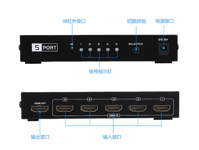 The Maituo Vmoments MT-SW501MH 5 into 1 out of the HDMI switcher with remote control audio-video HD shareware