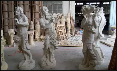 Fenghao sandstone relief mural flower pot Roman column garden sculpture water spray round carving★Y074 player