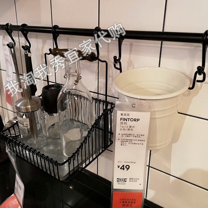 Matching mesh basket 20X19X23 cm black length 57 cm hanging rod black length 79 cm hanging rod hook black height 11 cm 2-piece hook black height 7 cm 5-piece hanging rod with