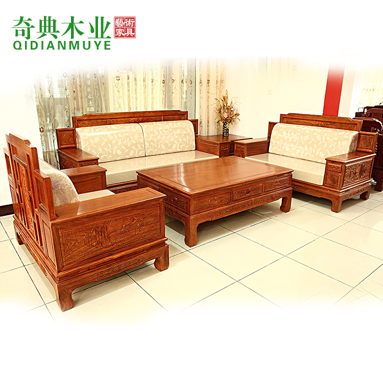 Mahogany sofa modern new Chinese style hedgehog red sandalwood simple living room all solid wood African huanghuali wood furniture combination