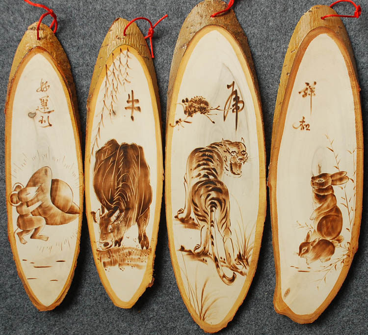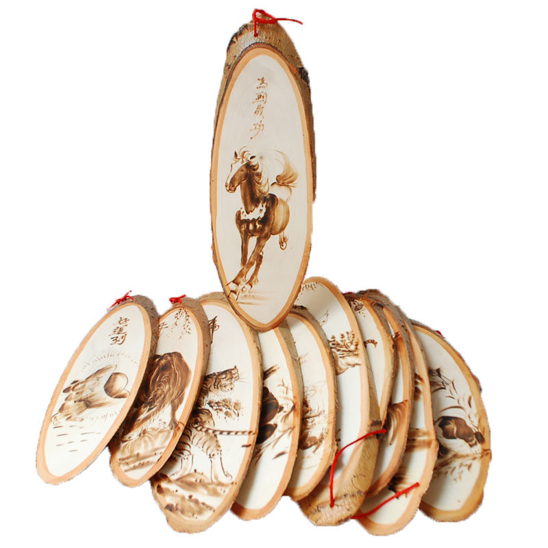 White Poplar Wood Branded 12 Zodiac Birthday Small Gift Idea Wall-mounted Rat Bull Tiger Rabbit Dragon Snake Horse Monkey Chicken Dog Pig