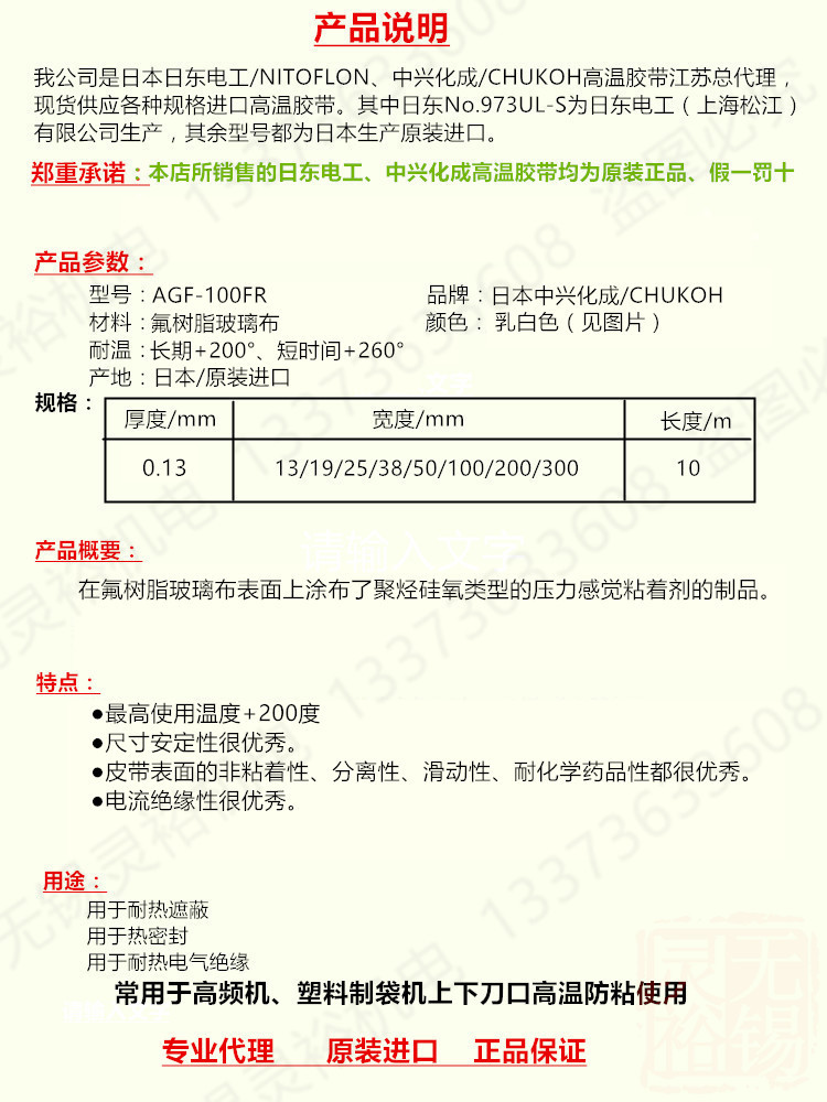 False one penalty ten Zhongxing Chemical AGF-100FR Teflon high temperature tape High temperature tape 0 13X13X10