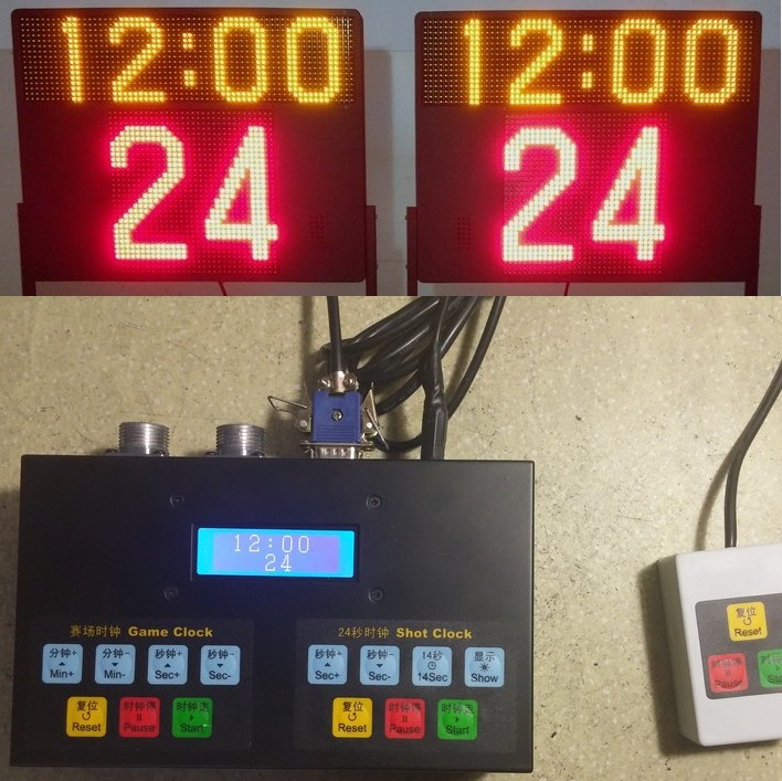 Full set of 24 seconds 2 screens 1 set of controllers 2 cables Full set of 24 seconds timer with vertical bracket Full set of 24 seconds timer with basketball rack fixed column