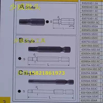 Shaowei electric hexagon batch head pneumatic hexagon screw screwdriver head hexagon spiral head S5 * 75 * S6 35