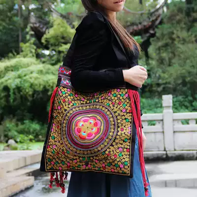 Women's bag national style embroidered bag retro wooden beads Liu Su satchel shoulder bag portable casual women's bag updated multi-color