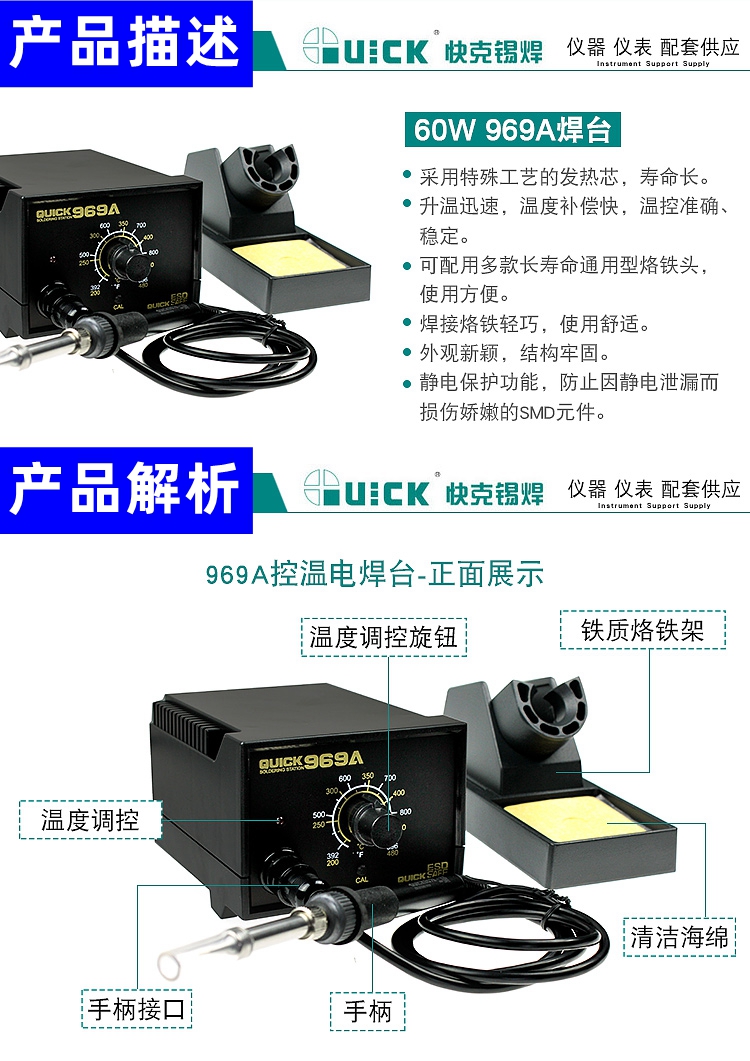 QUICK 969A anti - static welding table temperature control adjustable home motherboard mobile phone repair constant temperature soldering iron