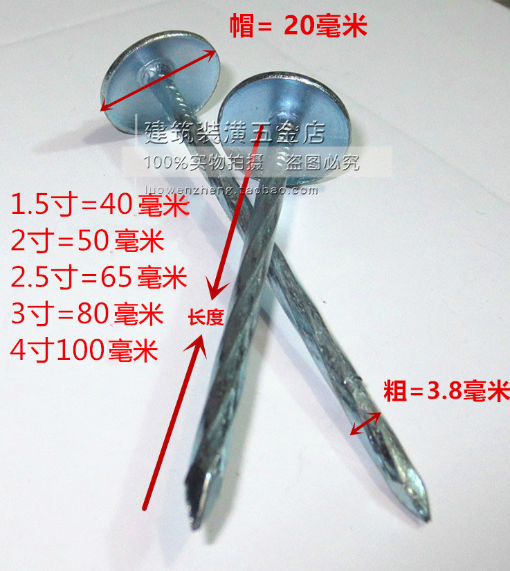 Asbestos tile nails Corrugated nails tacks color steel tile nails pushpins 2 inch 2 5 inch 3 inch 4 inch a box of 20 packs