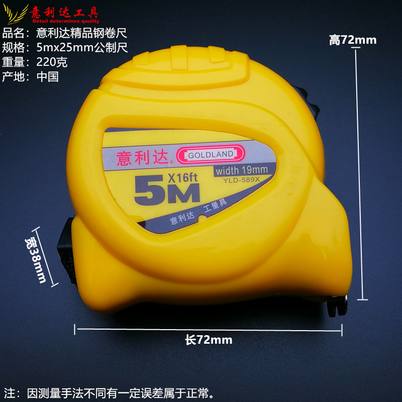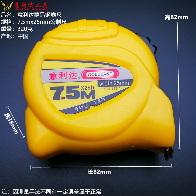 Tape measure 5 meters Yilida steel tape measure 3 meters 5 meters 7 meters 10m thickened and hardened decoration measurement wear-resistant ruler