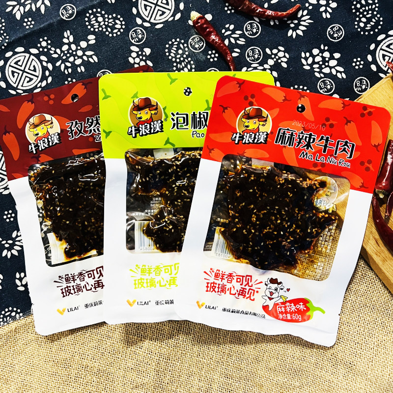 Chongqing Terrific cattle wave Han beef meat dry 60g * 3 sacks of spicy peppers BBQ zizzang Casual Snack Snack-Taobao