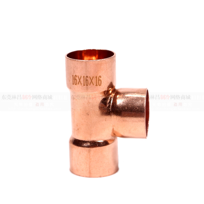T-type three-way red copper pipe fittings Chengkou T-shape three-way air welding port 6 35-42mm refrigeration accessories