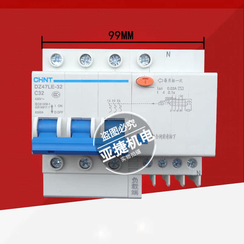 CHNT Zhengtai three-phase four-wire leakage circuit breaker DZ47LE-32 3P N C10 C20 C32 C40 C60