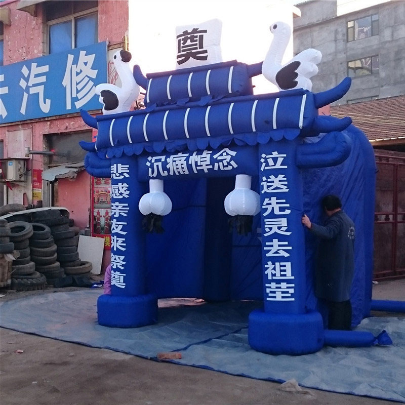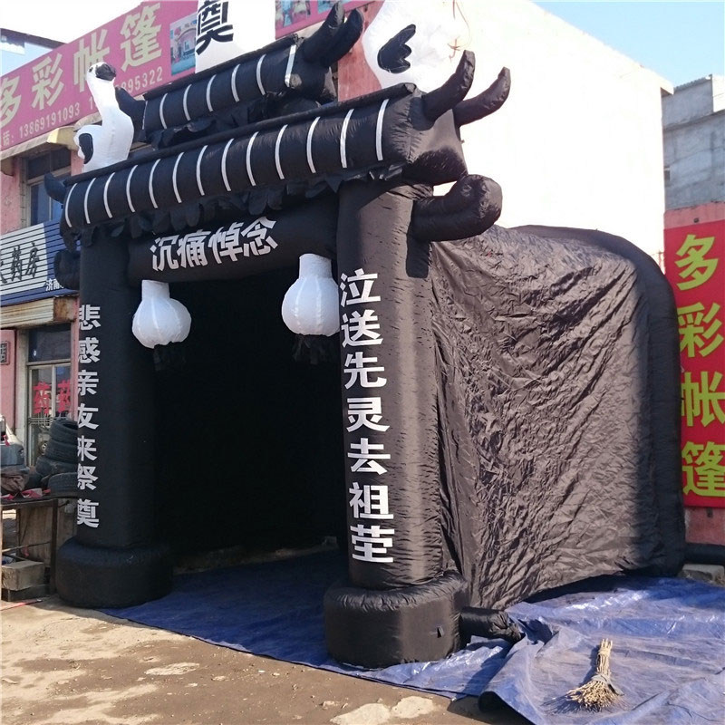 Custom inflatable white matter wreath inflatable archway blue and white black spirit penthouse funeral arch funeral spirit shed Eight Immortals crossing the sea