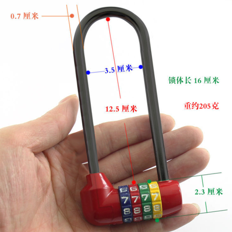 Extended four-bit U-shaped password lock padlock lock anti-theft lock long beam wardrobe wardrobe lock bicycle lock waterproof