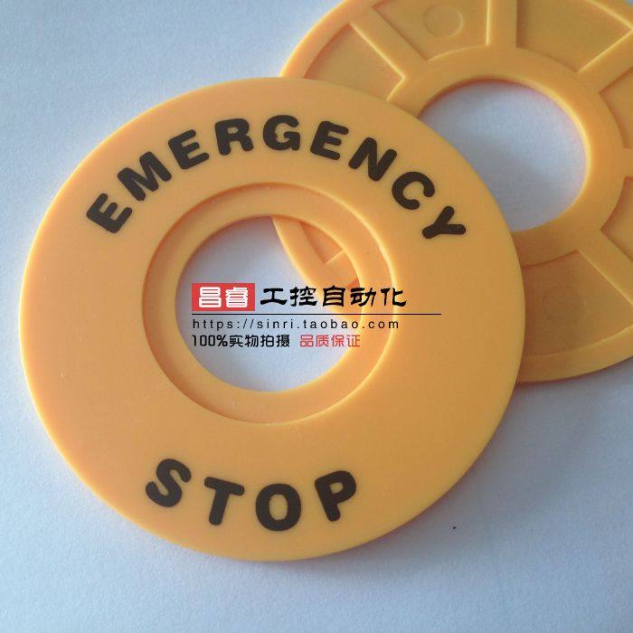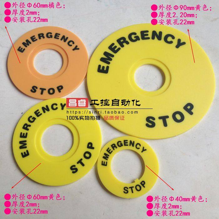 Emergency stop button sign Yellow card warning circle emergency warning sign Outer diameter 60mm inner diameter 22mm