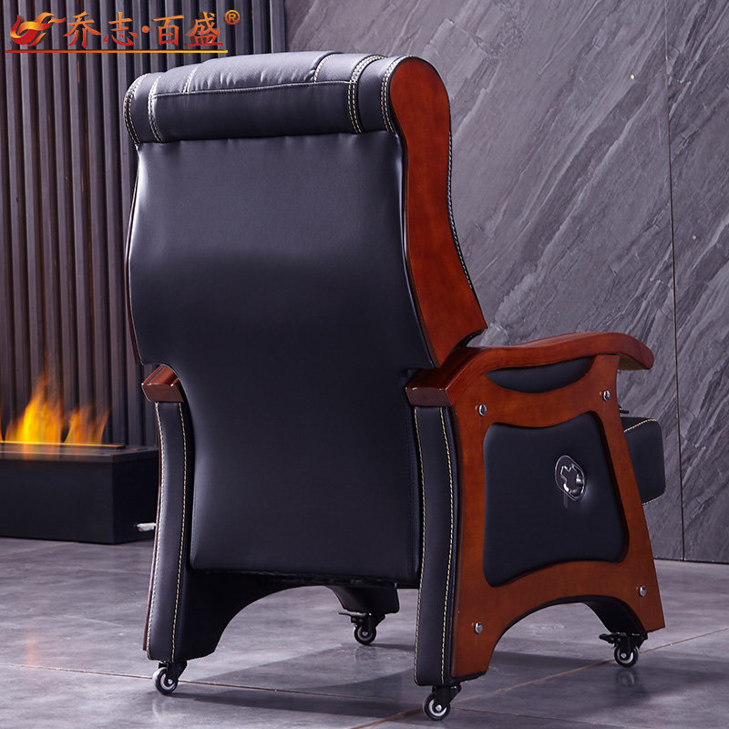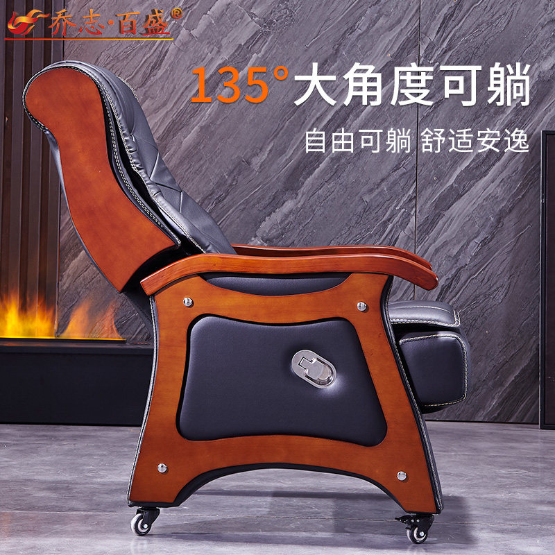 Solid Wood Owner Chair Genuine Leather Large Class Chair Four Feet Cozy President Office Chair Home Book Room Computer Chair Cow Leather