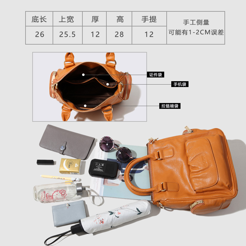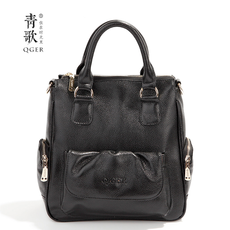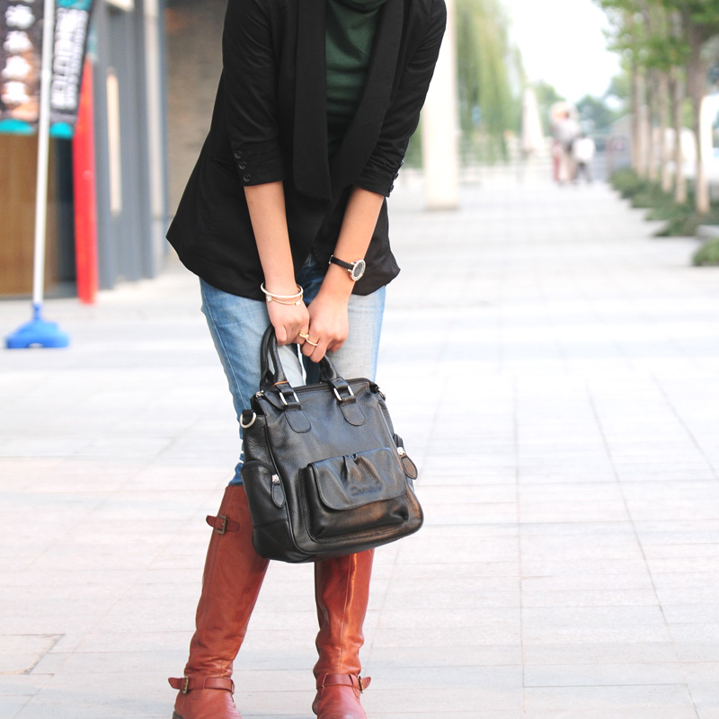 Literary retro fashion all-match commuter first layer cowhide black leather vertical hand-held one-shoulder messenger medium women's bag