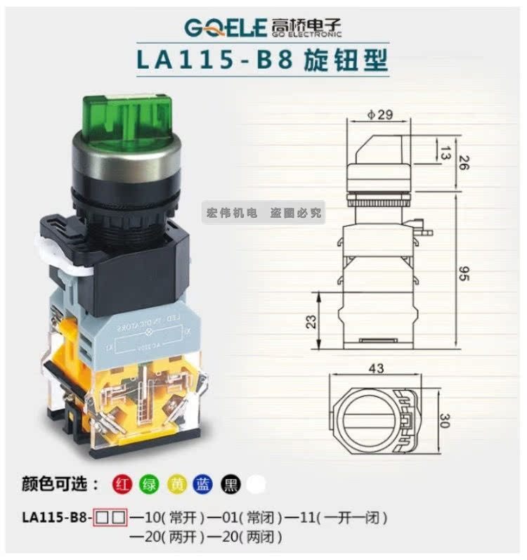 High bridge GQELE button switch LA115 -B8-11XD with light knob switch LA38 with lamp two-gear conversion
