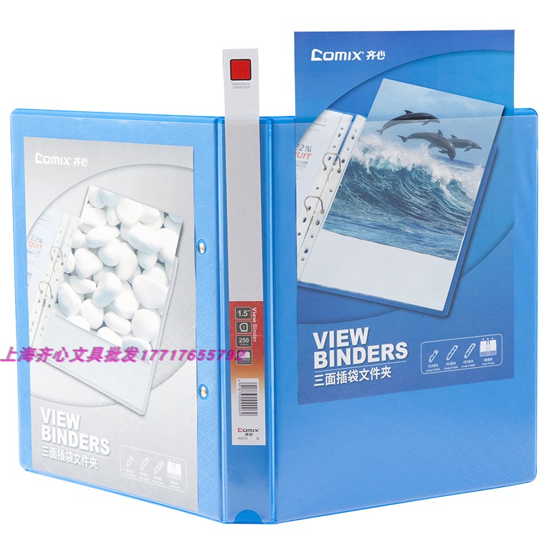 (Authorized) Comix A0213 Easy to Display American Three Sided Slip Pocket 1 5 "3 Hole D-Clip A4