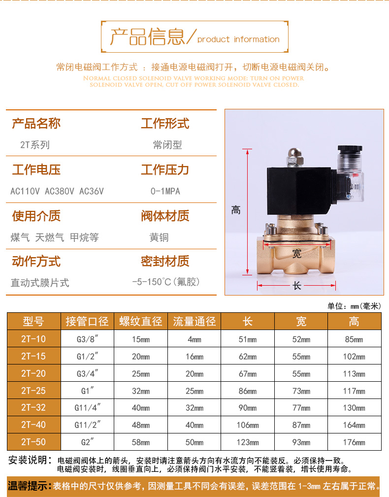 2T series gas solenoid valve special voltage