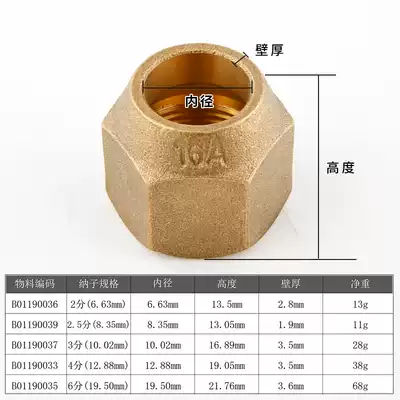 Air conditioning brass sodium copper tube connecting nut brass forged Nat Imperial thickened Nat copper nut joint