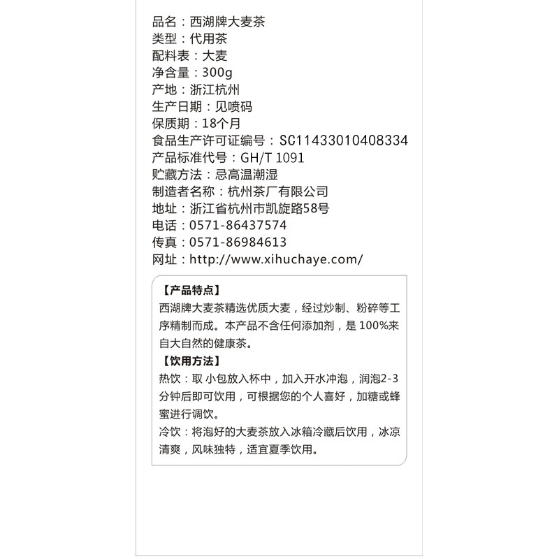 West Lake brand Wheat tea Flower tea series Wheat tea 300g original tea bag tea grain tea