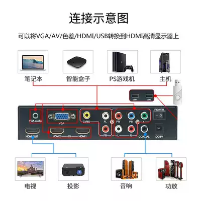 Youting CVBS HDMI YPBPR VGA chromatic aberration to HDMI HD video converter 4K doubling line switcher