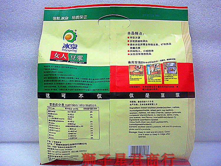 Instant bean flour soybean oligosaccharides maltose maltose plant fat weekend wheat germ calcium carbonate complex vitamin quadruce iron sodium lactic acid zinc edible spices