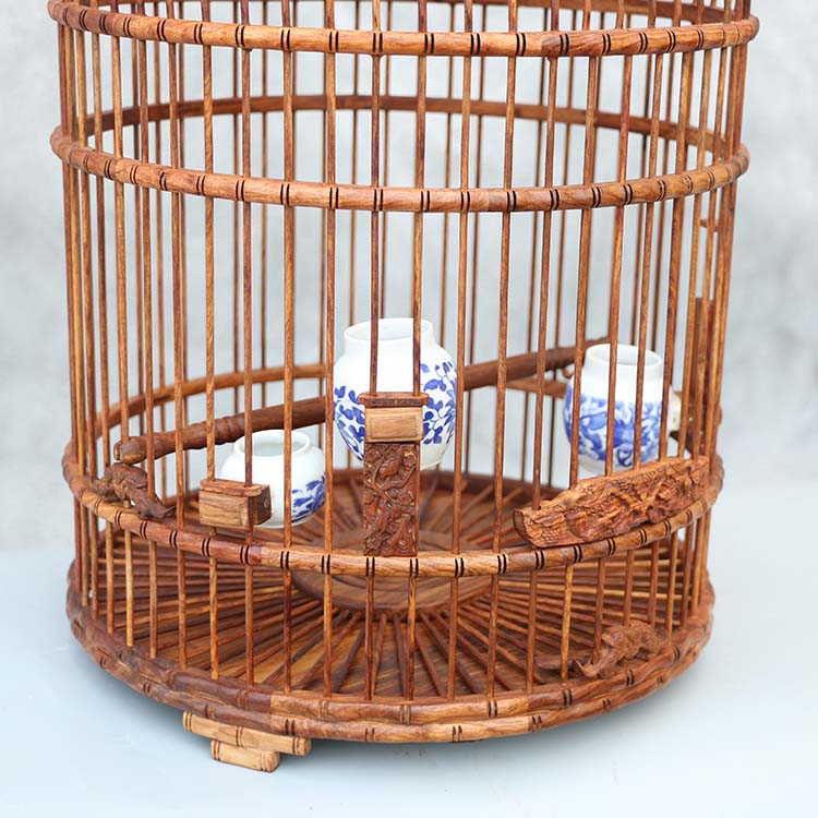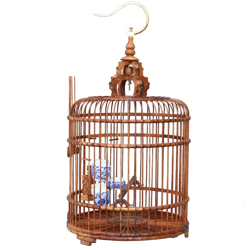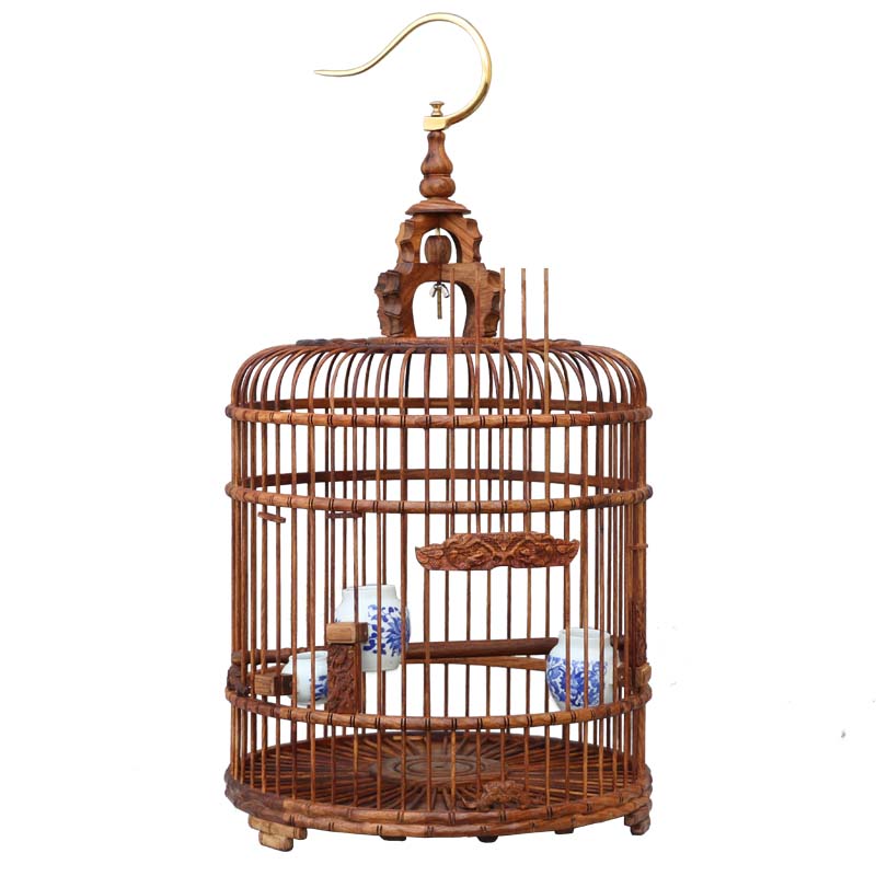 Red Wood Yellow Flower Pears Painting Brow Cage Bamboo Handmade Engraving Parrot Octave Embroidered Eye Synod Round Bird Cage Big