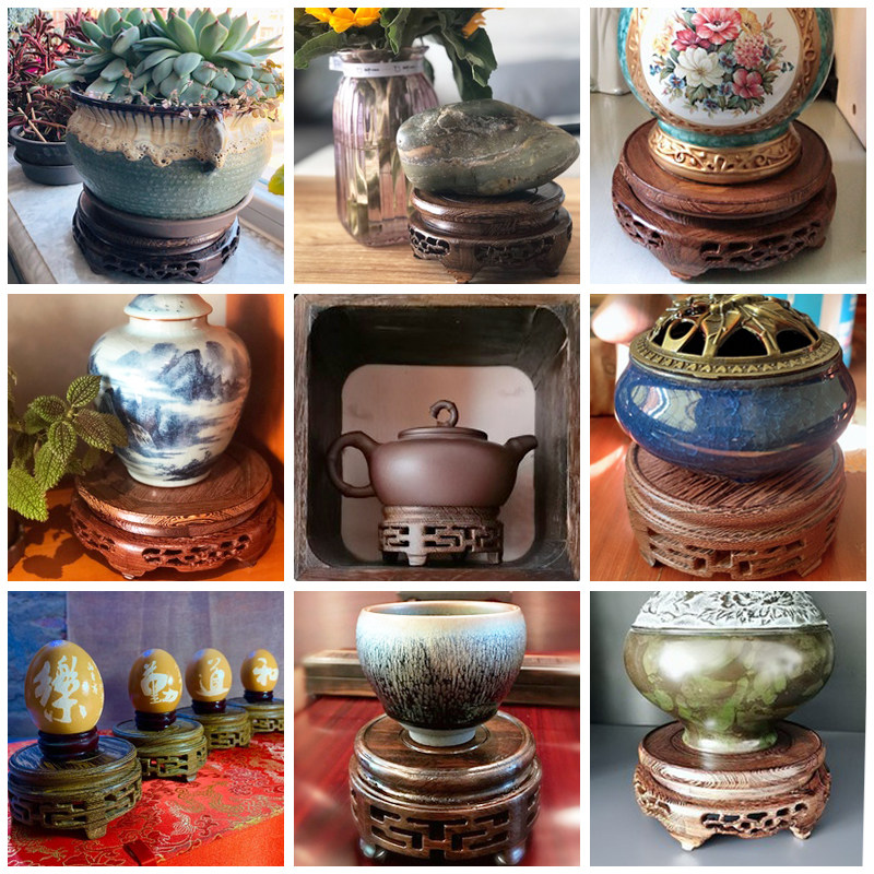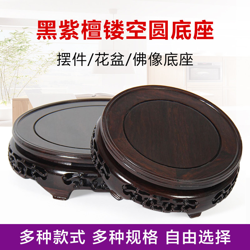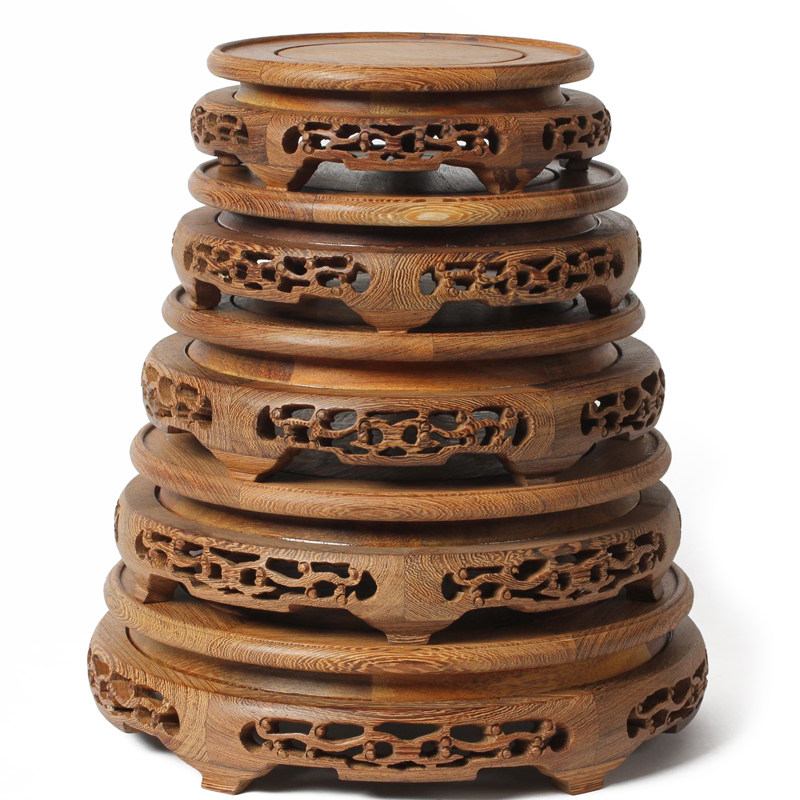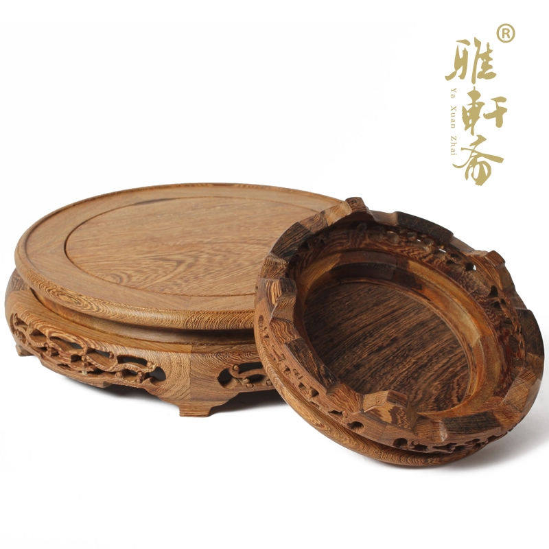 Mahogany round teapot fish tank stone Buddha statue vase flower pot base chicken wing wood strange stone solid wood bracket ornament