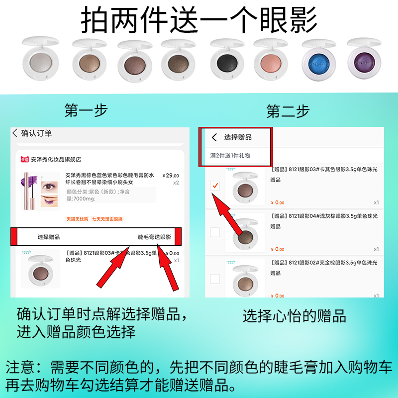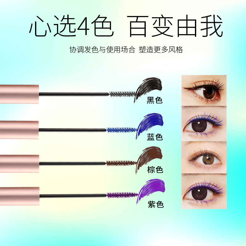 Anze Show black brown blue purple colored mascara waterproof fiber long roll teething not easy to dye small brush head female