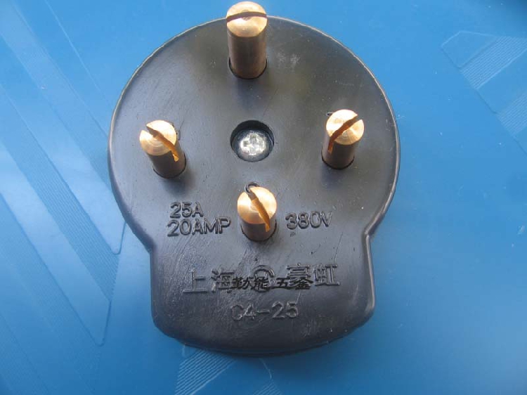 Haohong 25A32A380V four-eye plug three-phase four-wire round plug 380V-440V black four-hole plug