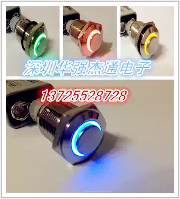 High-end 16MM metal self-reset button key switch computer car modification power switch with LED light 12V