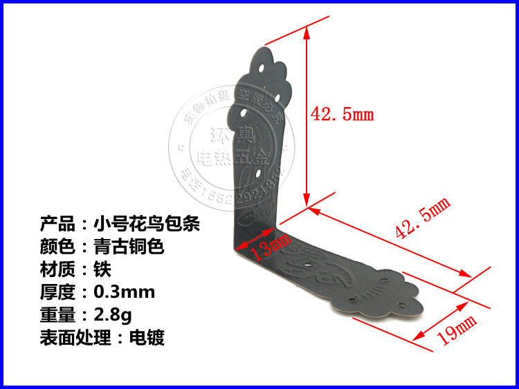 Gift box accessories Wooden box edging Gift box bag corner guard Flower and bird corner code Green bronze small bag